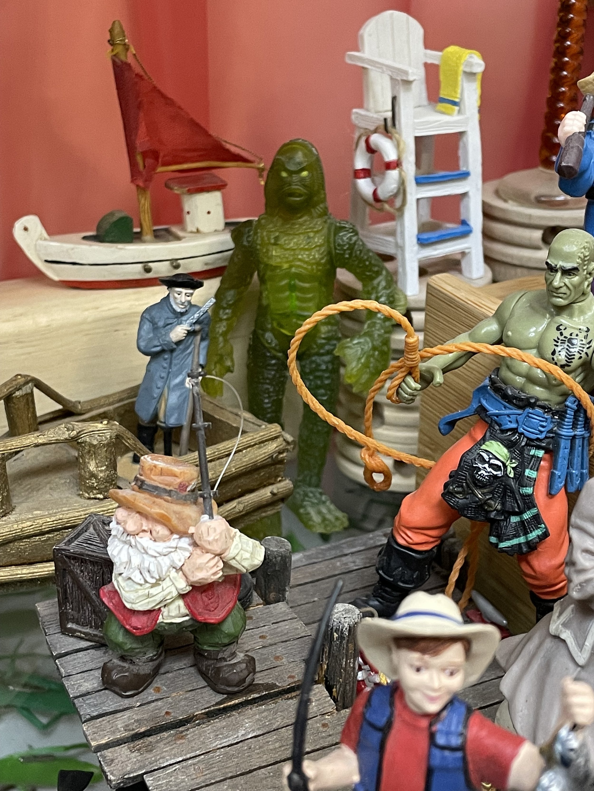 For “gambling” we had playing card suit objects, dice, dice in dice boxes, a miniature gambling scene of dogs playing poker, various gambling games, Las Vegas items, and shell frogs playing bingo, pool and poker (which we wish we had more of as they are wonderful!!!).