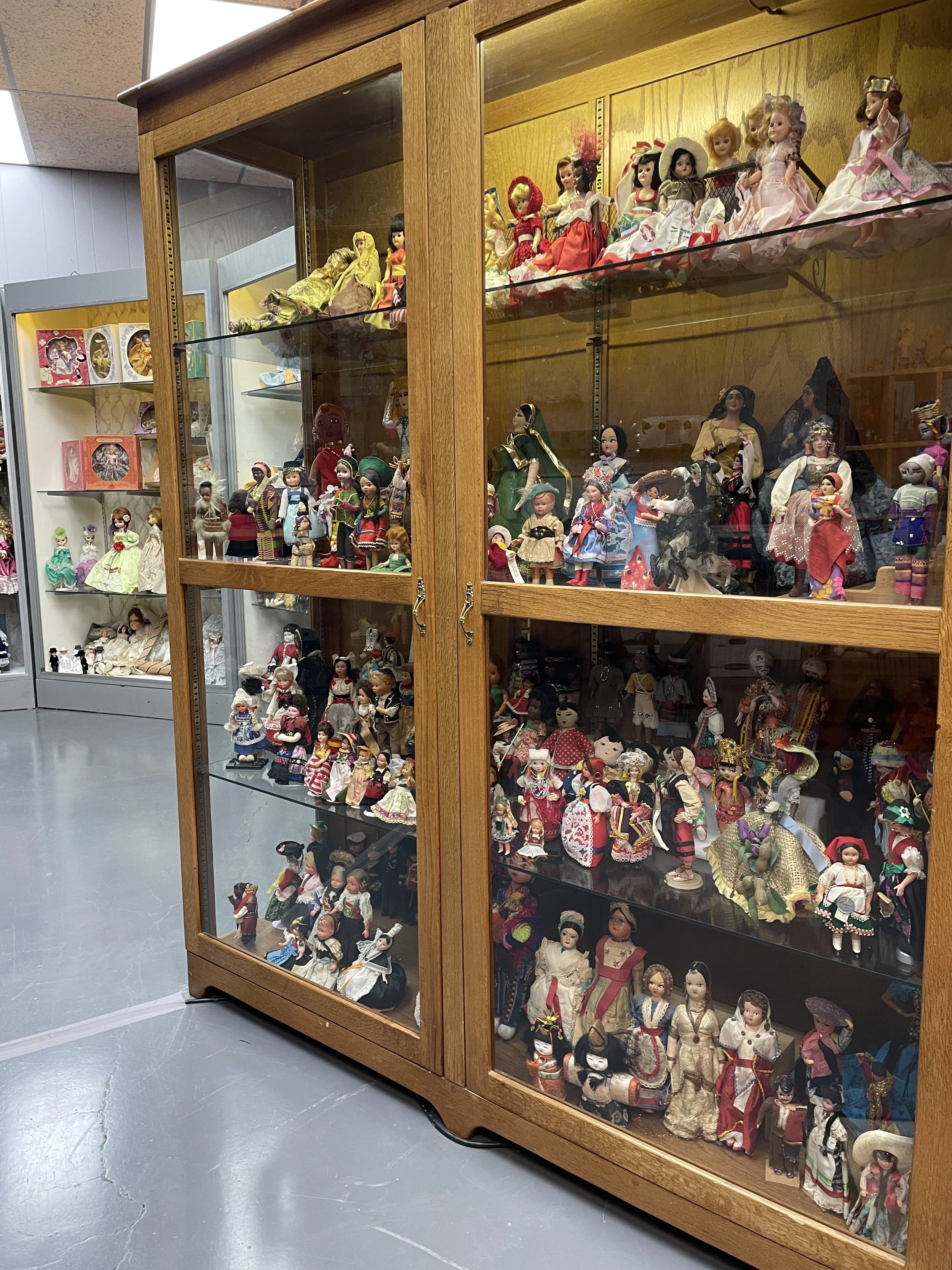Antique dolls, pin dolls aka half dolls, dolls from around the world, handmade dolls, straw dolls, paper dolls, storybook dolls, and a commissioned cartoon by Christopher Baldwin.